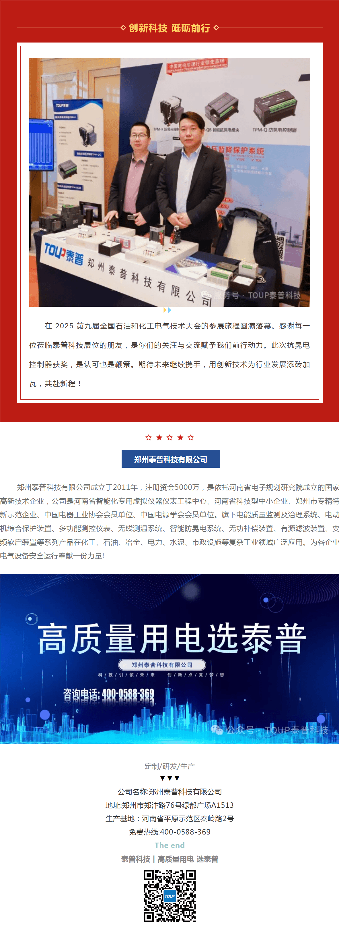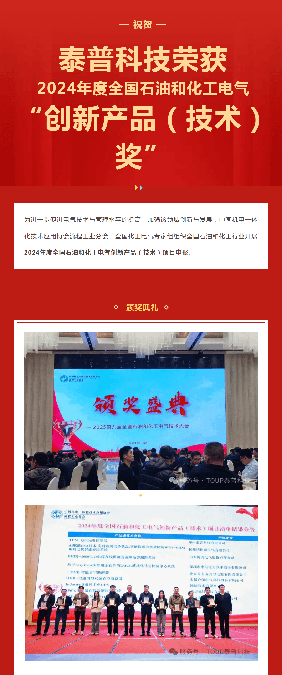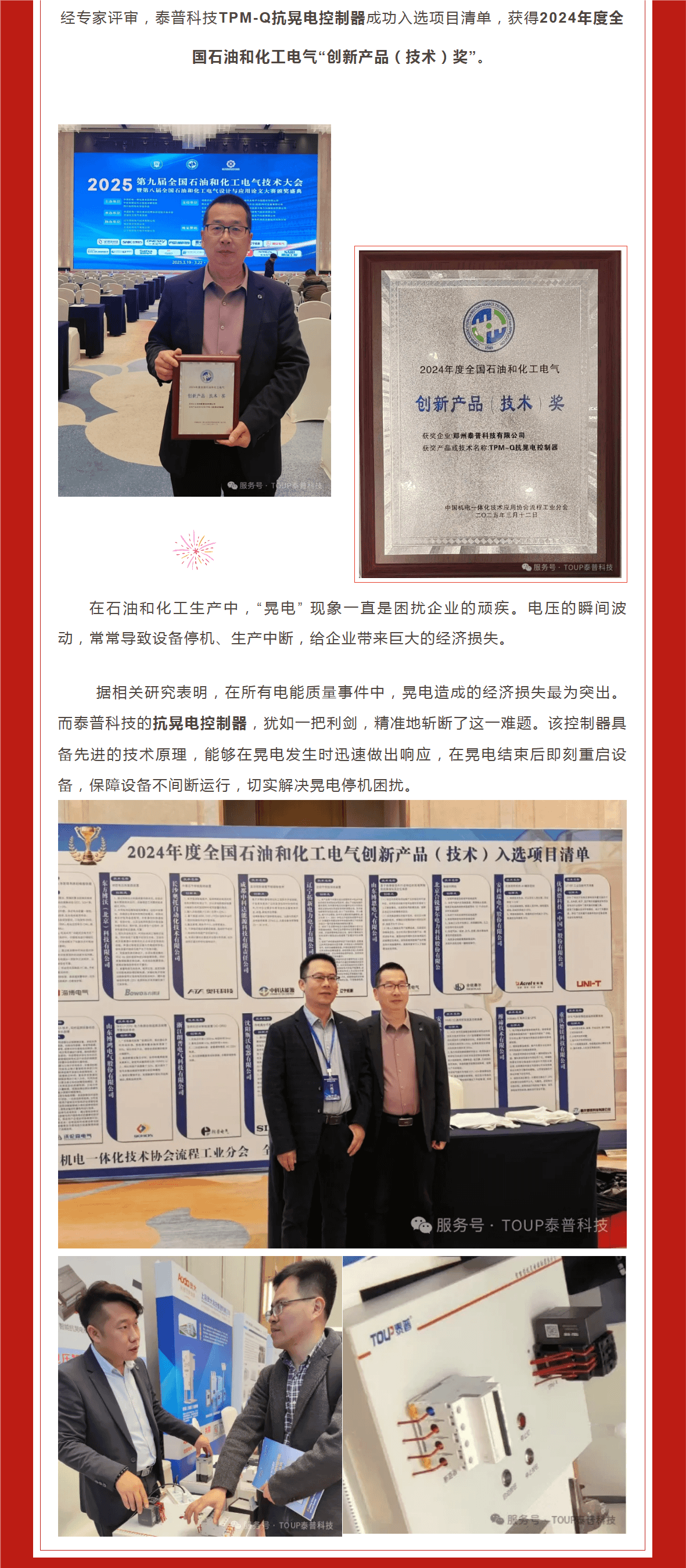 喜報!泰普科技再獲殊榮,抗晃電控制器摘得全國石油和化工電氣“創(chuàng)新技術(shù)獎”!